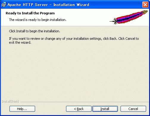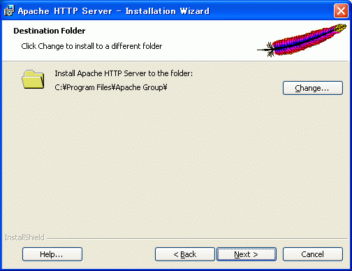 デフォルトでは「C:\Program Files\Apache Group\」となります。別のフォルダにインストールする場合は「Change」ボタンを押して指定してください。