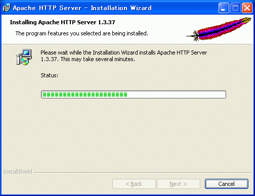 途中でインストールを中止したい場合は「Cancel」ボタンを押してください。インストールが中断されます。