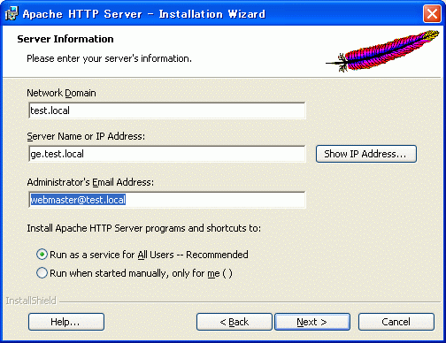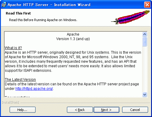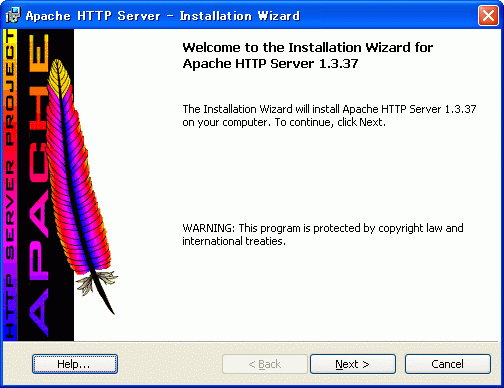 FAQ > Apacheのインストール手順ジャイアント営業に付属のApacheのインストーラーを起動した直後の画面です。