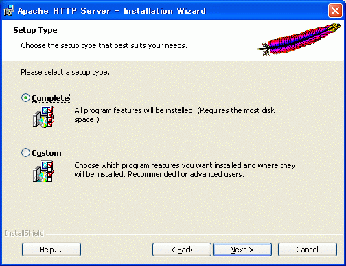 通常は「Complete」を選択し、「Next」ボタンを押してください。