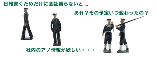 製品情報 > ジャイアント営業 > 機能の紹介 - コマンドメール外出する機会が多いビジネスマンの方にとっては、社内の情報が、社内からしか アクセスできないというのは、不便である以上に、コストの増加や機会の損失を 招いています。 打合せの際、予定が確認できないために次の打合せの日程を決められなかったり、 日報の提出のためだけに、出張先から会社に戻ったりすることが行われています。 社内システムは、社外からのアクセスを可能にすれば、それだけで活用の幅を広げ られるのです。
