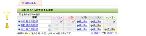 また、まだ読んでいない日報も一目で分かるので、提出されているのに見落としていた、ということも防止します。