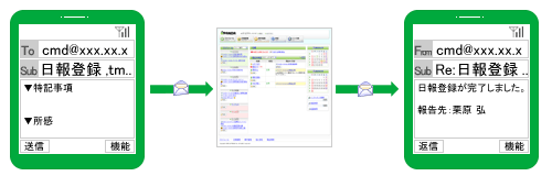 コマンドメール機能を利用すると、外出先から携帯でメールを送信して、