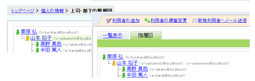 ジャイアント営業では、上司と部下の関係を階層的に設定することができ、縦の情報共有が簡単にできるようになっています。
